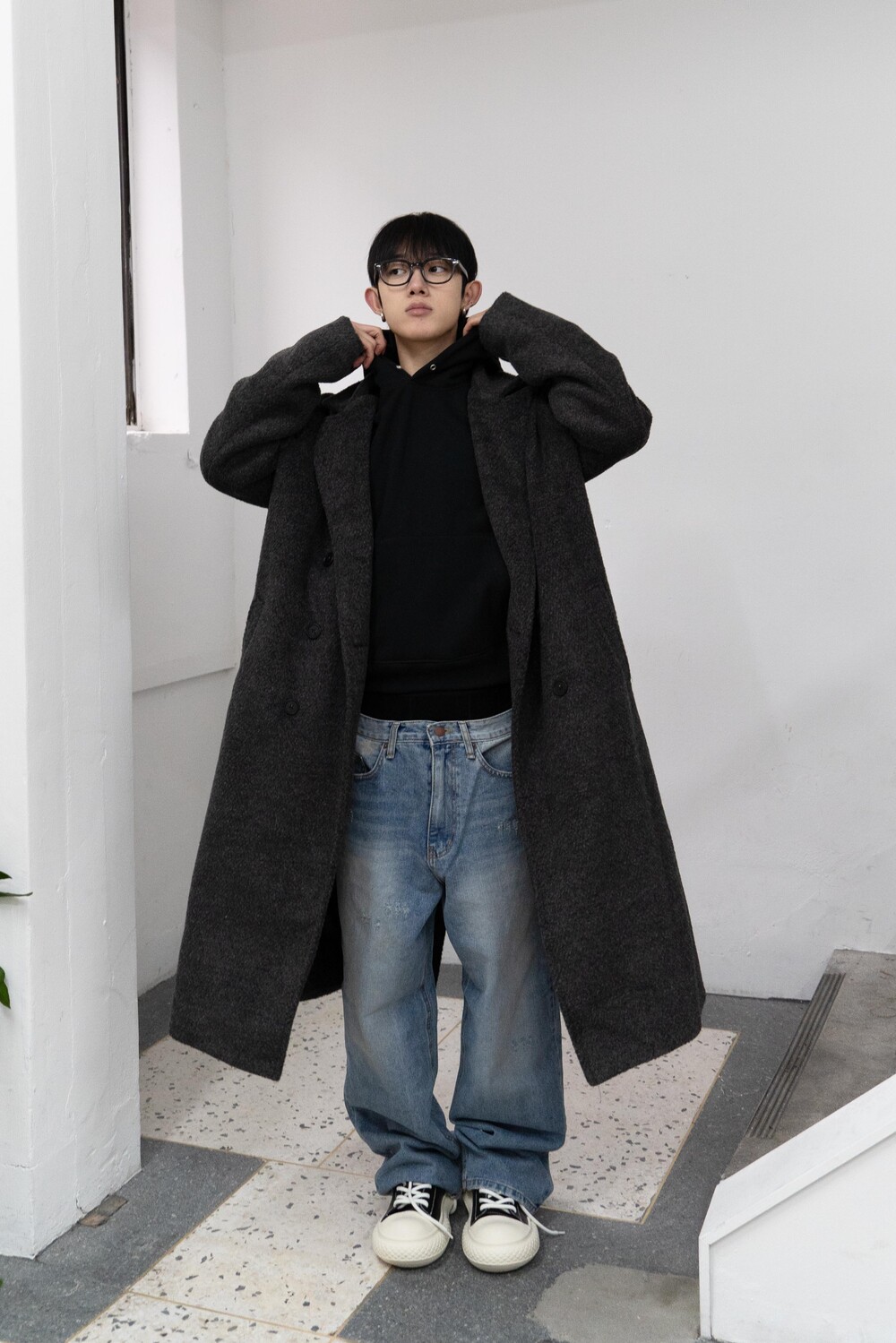 와이드한 실루엣으로 체형 커버는 물론 트렌디한 무드를 연출해줍니다