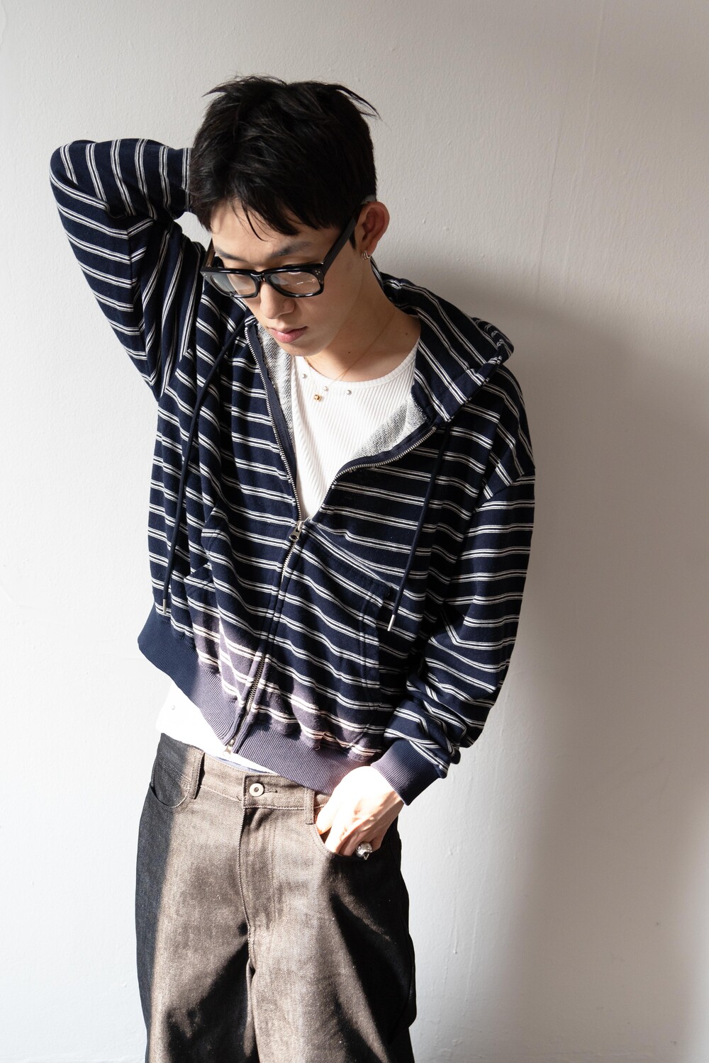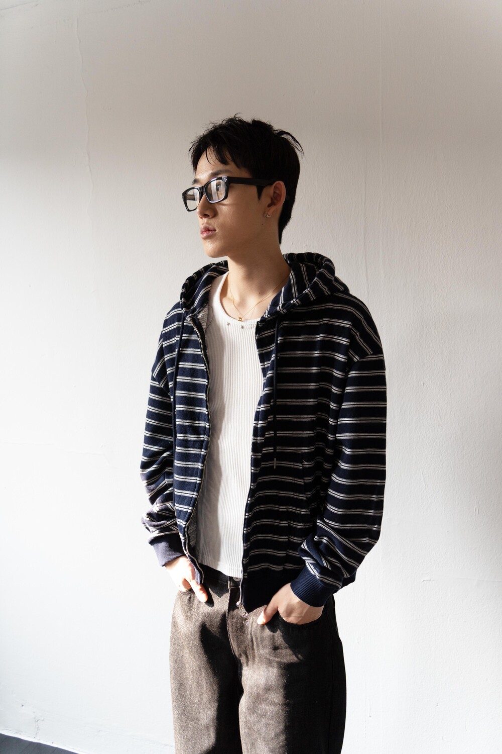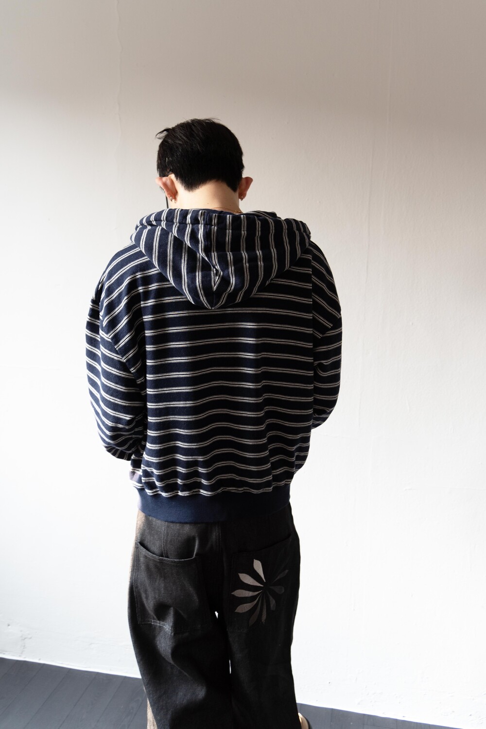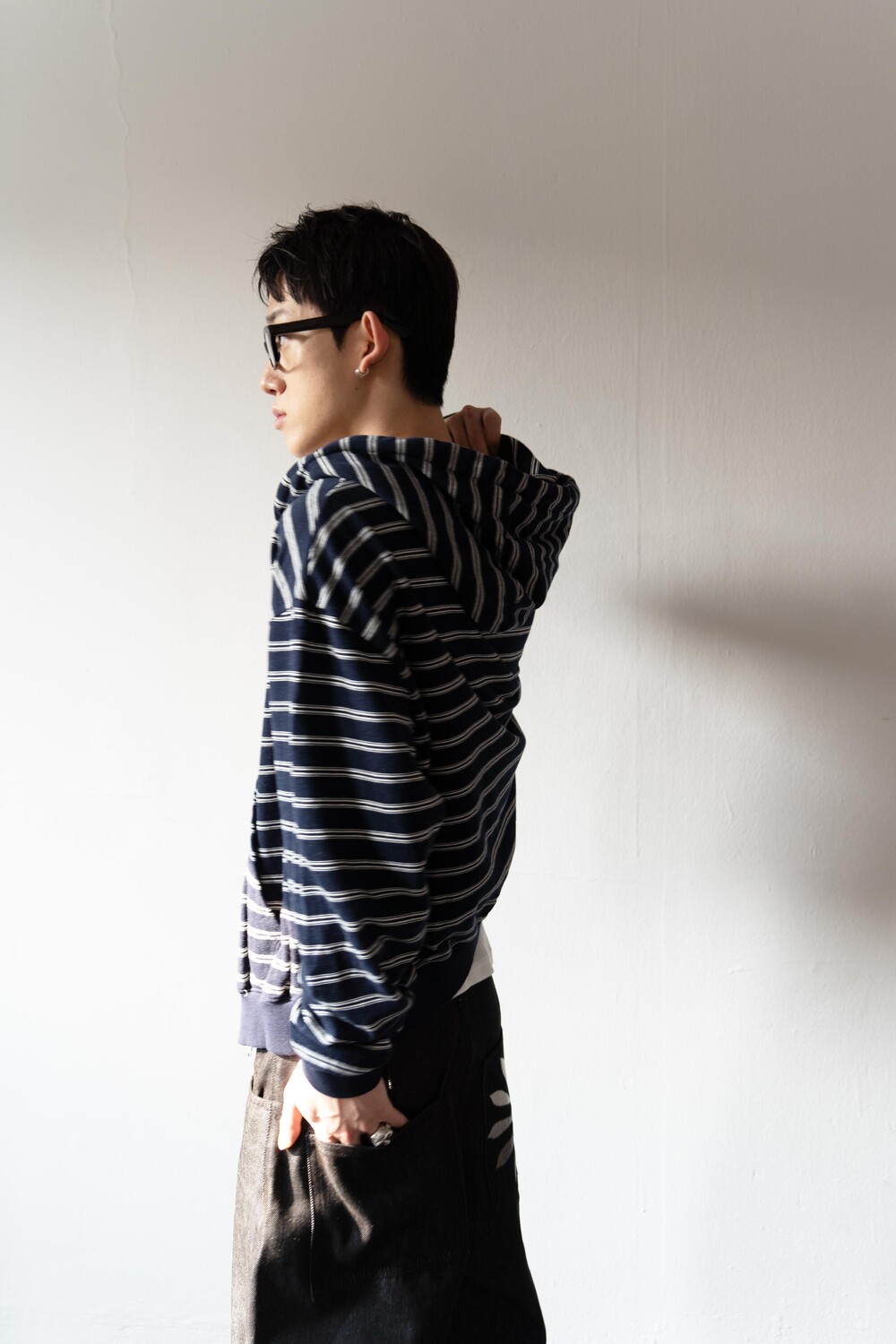 캐주얼한 스트라이프 패턴이 매력적인 집업 후디입니다.